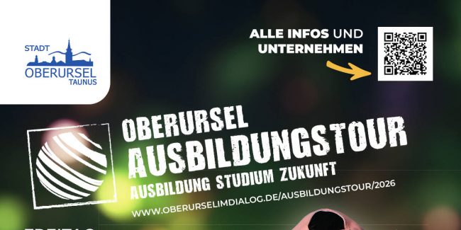 Liebe Eltern und Erziehungsberechtigte,liebe Schülerinnen und Schüler, der Magistrat der Stadt Oberursel lädt am Freitag, 06. März 2026, zwischen 11 und 16 Uhr in die Hochtaunusschule und die Aussenstelle der Feldbergschule zur Ausbildungstour 2026 ein und freut sich auf Ihr und euer Kommen! Die Schülerinnen und Schüler erhalten hier eine hervorragende Gelegenheit, sich über verschiedene Schulabschlüsse, Ausbildungsberufe, Studiengänge und Praktika…